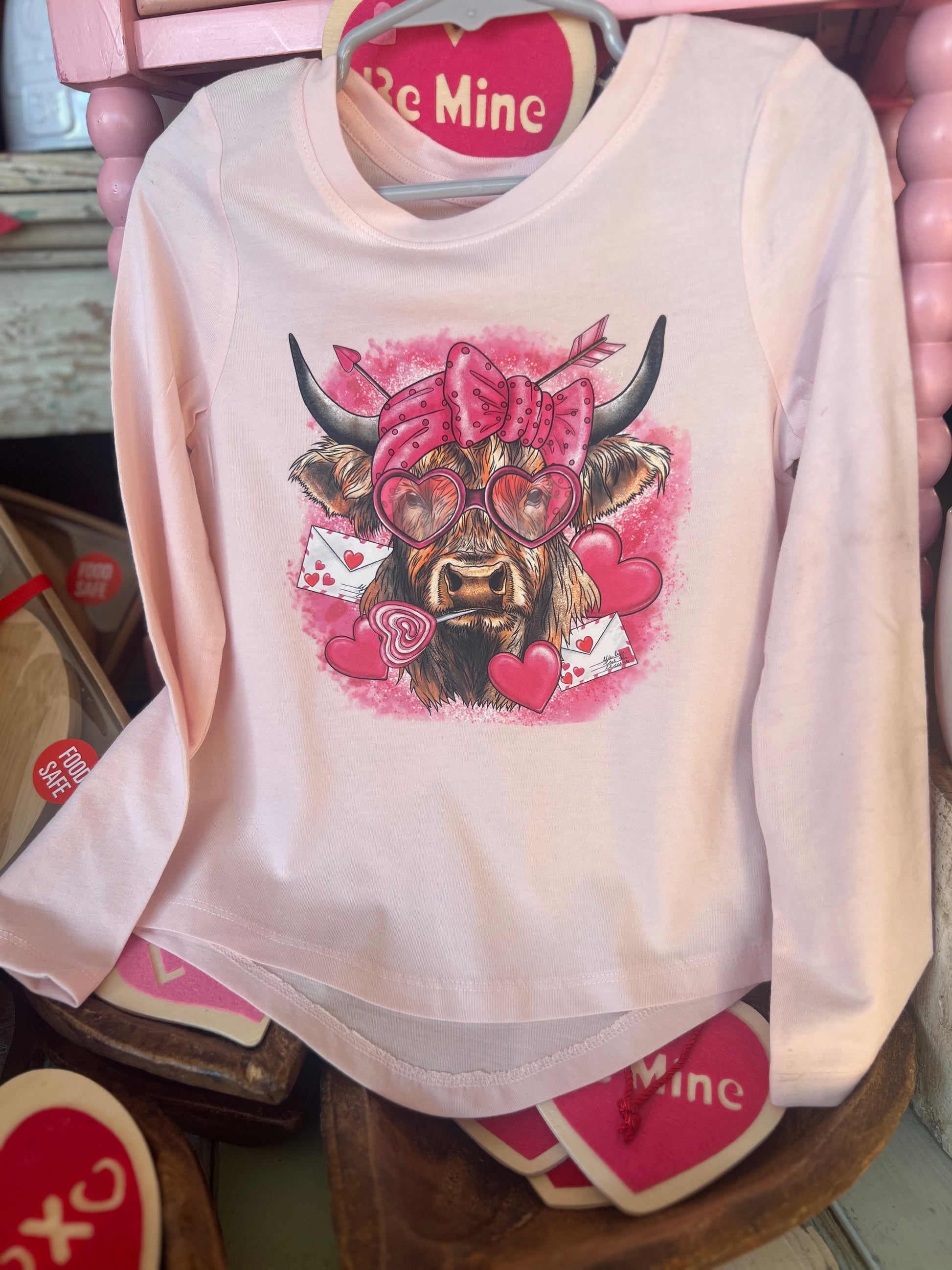 Pink heart cow tee long sleeve